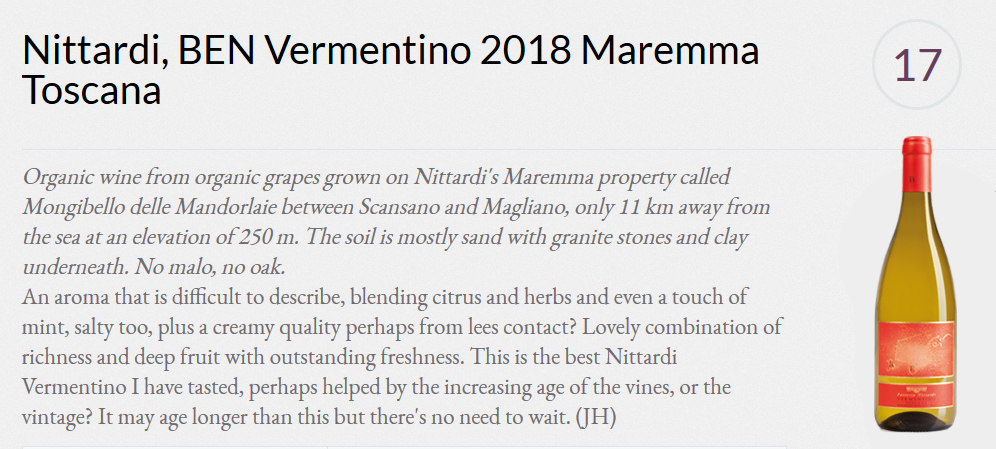 Jancis Robinson hat soeben unseren BEN 2018 Vermentino verkostet und war begeistert: