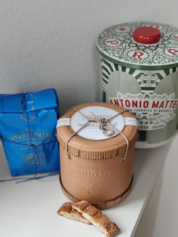 Blaue Kekspackung Cantuccini von Antonio Mattei aus Prato, Toscana. 250g.,