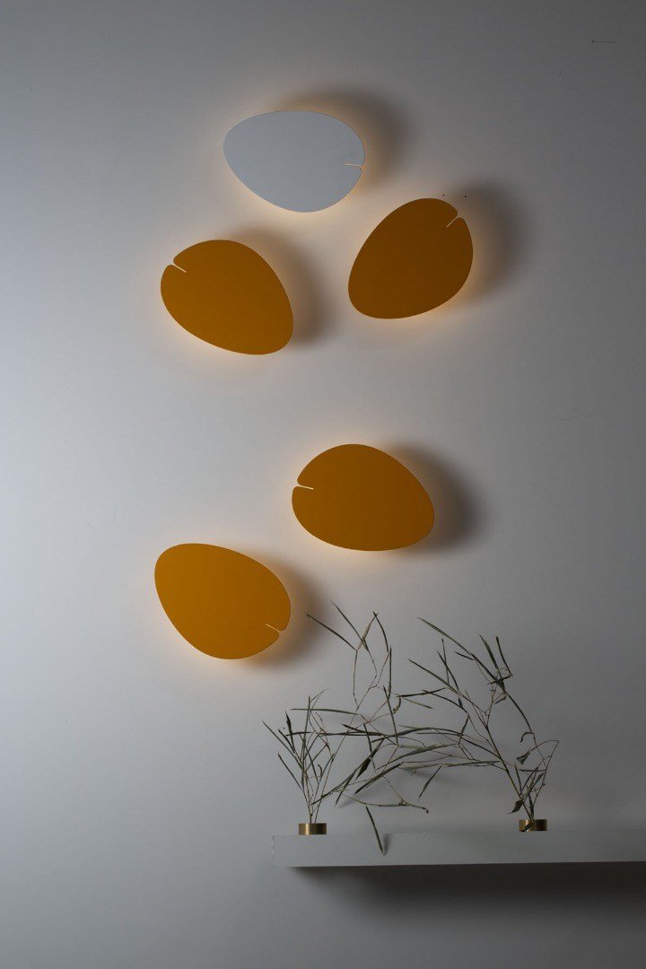 Lucciola von Martinelli Luce ist eine LED Wandleuchte im gelben modernen Design. Sie spendet indirektes Licht und ahmt die Farbe und Form eines Glühwürmchens nach – daher auch der Name. Methacrylatdiffusor weiß-opal.